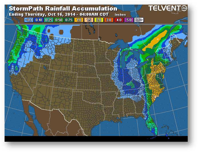 Trajectoire de tempête – Accumulation de précipitations (pouces)