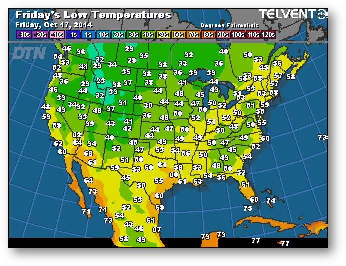 Prévisions des températures les plus basses (degrés Farenheit)