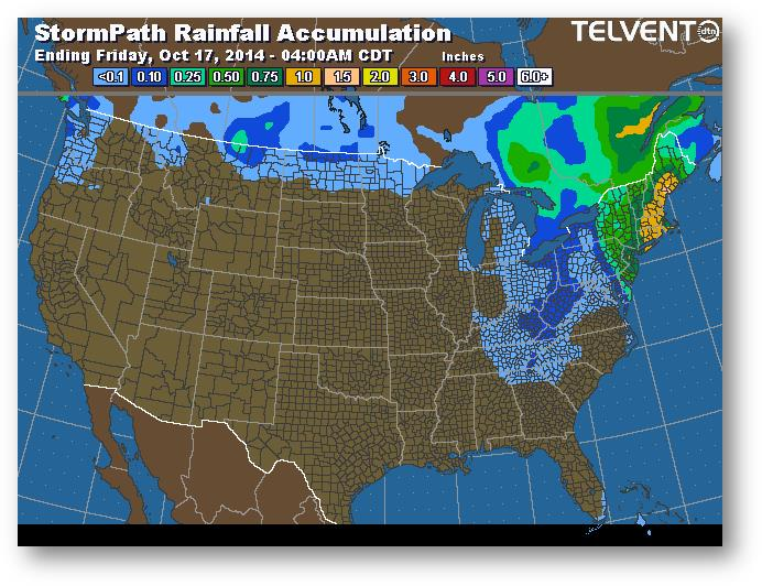 Trajectoire de tempête – Accumulation de précipitations (pouces)