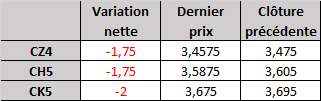 - Prix calculé en fonction du rapport 201 du CME hier :