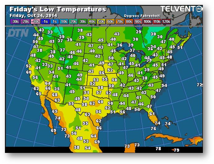 Prévisions des températures les plus basses (degrés Farenheit)