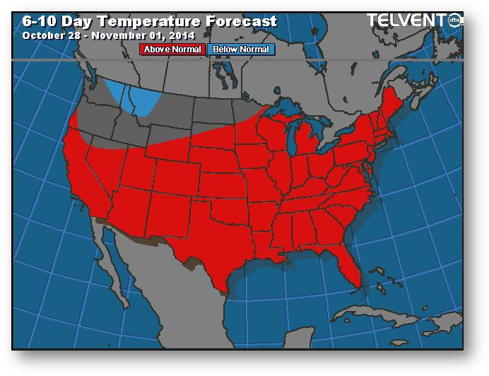 Prévisions de températures pour les 6 à 10 prochains jours