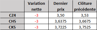 - Prix calculé en fonction du rapport 201 du CME hier :