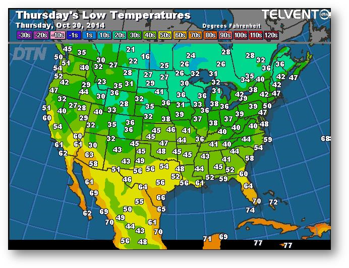 Prévisions des températures les plus basses (degrés Farenheit)