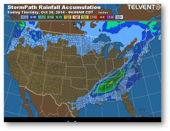 Trajectoire de tempête – Accumulation de précipitations (pouces)