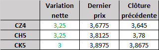 - Prix calculé en fonction du rapport 201 du CME hier :