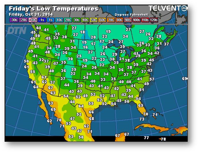 Prévisions des températures les plus basses (degrés Farenheit)