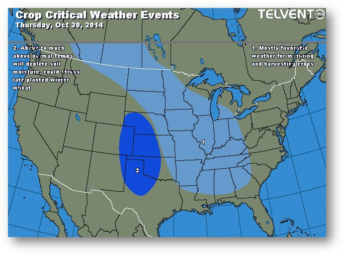 Rien de positif en vue pour le maïs : les prix ne sont pas suffisamment bas pour encourager la demande d'exportation et la croissance de l'éthanol sera limitée au cours de la prochaine année. Les contrats à terme ont encore suivi le soja et la farine de soja. Les agriculteurs ont été de grands vendeurs de la récolte de cette année et aussi de l'année prochaine. La production d'éthanol a augmenté à 937 000 barils/jour alors qu'elle était de 896 000 barils/jour la semaine précédente. Les stocks d'éthanol ont causé un choc, ils étaient à seulement 716 millions de gallons comparativement à 753 millions de gallons la semaine précédente. Les ventes à l'exportation devraient se situer autour de 700 000 à 900 000 tonnes.