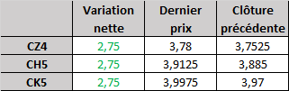 - Prix calculé en fonction du rapport 201 du CME hier :