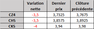 - Prix calculé en fonction du rapport 201 du CME hier :