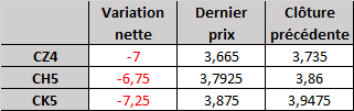 - Prix calculé en fonction du rapport 201 du CME hier :
