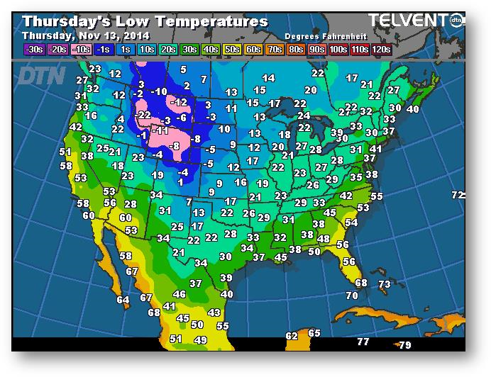 Prévisions des températures les plus basses (degrés Farenheit)