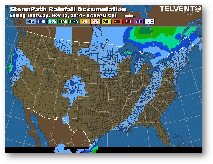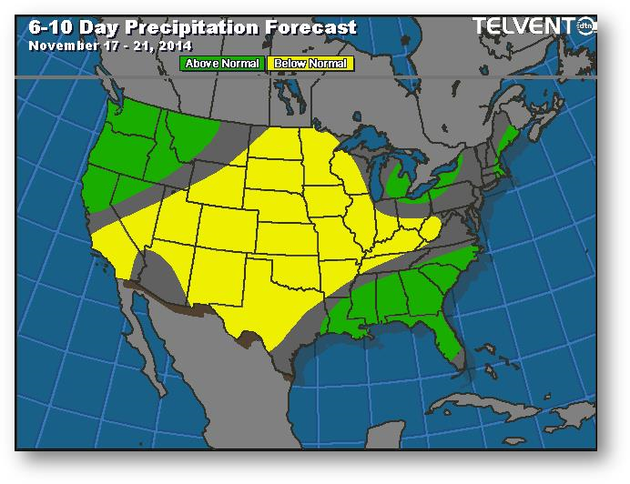 Rien de bien nouveau dans le maïs; la légère hausse s'explique par la tentative de suivre le soja. La météo demeure froide pour la fin de la récolte. Le redressement des prix a déclenché des ventes majeures dans le soja aux États-Unis et en Amérique du Sud. La CONAB a évalué la production de maïs au Brésil à 77,3-78,9 millions de tonnes comparativement à 76,6-79 millions en octobre et à 79,9 millions il y a un an. Les événements météo actuels au Brésil laissent présager que la récolte sera inférieure à la prévision de 78,1 millions de la CONAB et à celle de 75 millions du USDA. La production ukrainienne a été revue à la hausse dans le dernier rapport du USDA, passant de 25 à 27 millions de tonnes.