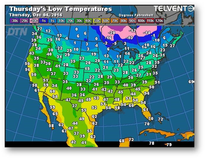 Prévisions des températures les plus basses (degrés Farenheit)