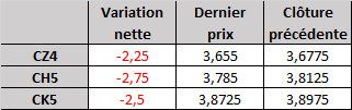 - Prix calculé en fonction du rapport 201 du CME hier :