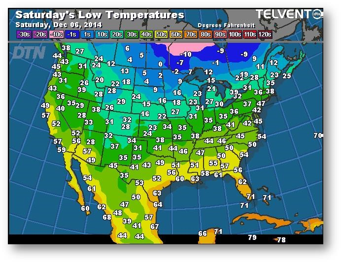 Prévisions des températures les plus basses (degrés Farenheit)