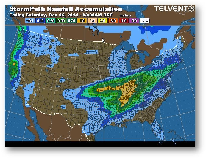 Trajectoire de tempête – Accumulation de précipitations (pouces)