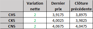- Prix calculé en fonction du rapport 201 du CME hier :