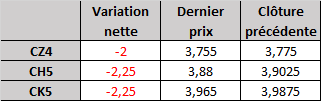 - Prix calculé en fonction du rapport 201 du CME hier :