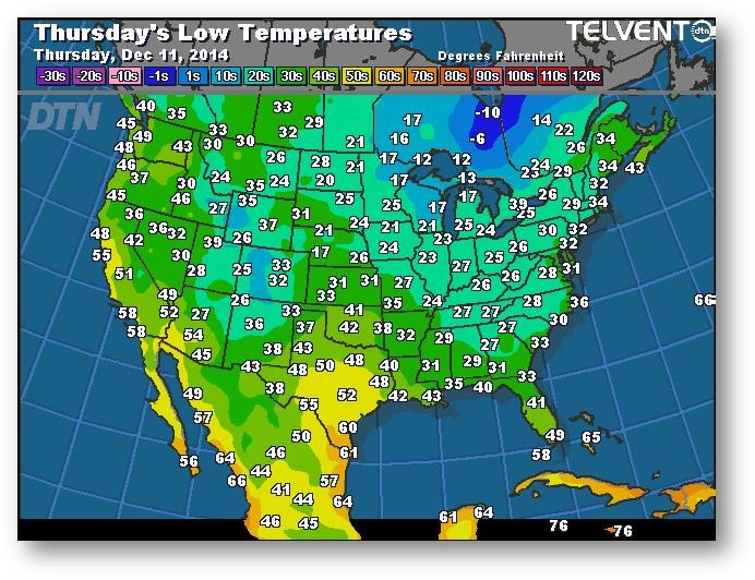 Prévisions des températures les plus basses (degrés Farenheit)