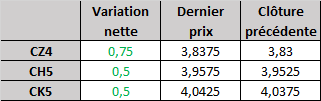 - Prix calculé en fonction du rapport 201 du CME hier :