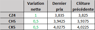 - Prix calculé en fonction du rapport 201 du CME hier :