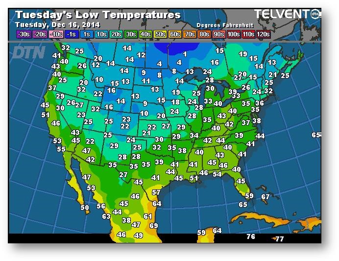 Prévisions des températures les plus basses (degrés Farenheit)
