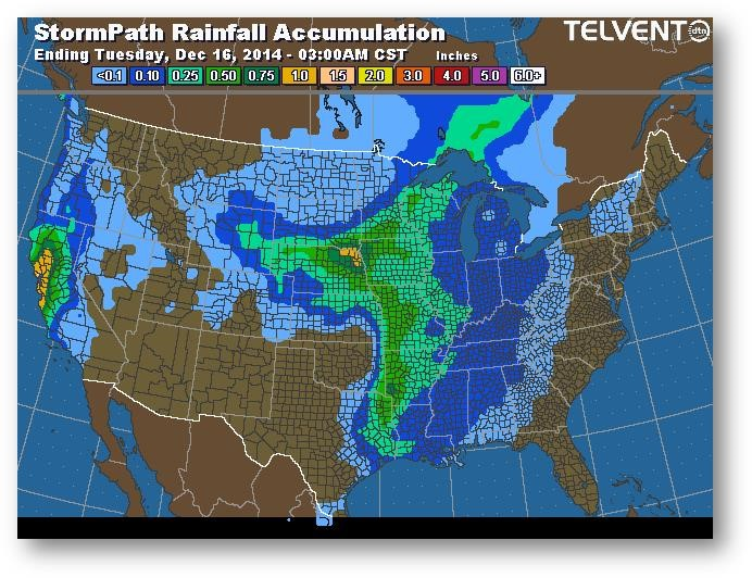 Trajectoire de tempête – Accumulation de précipitations (pouces)