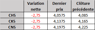 Contrat à terme du maïs à 6 h HNC : en baisse