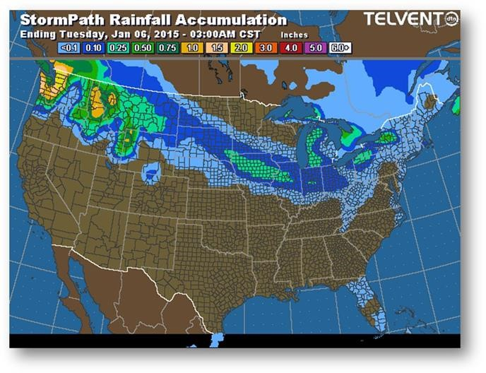Trajectoire de tempête – Accumulation de précipitations (pouces)