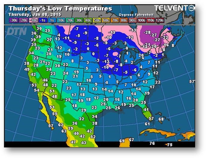 Prévisions des températures les plus basses (degrés Farenheit)