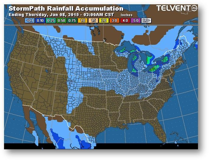 Trajectoire de tempête – Accumulation de précipitations (pouces)