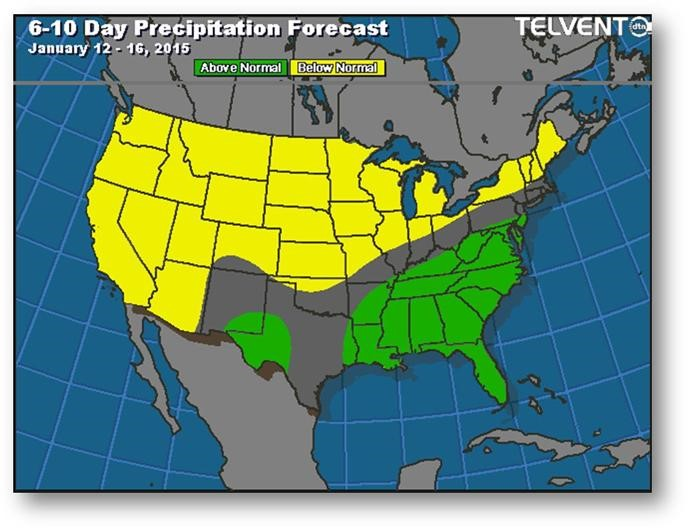 Prévisions de précipitation pour les 6 à 10 prochains jours