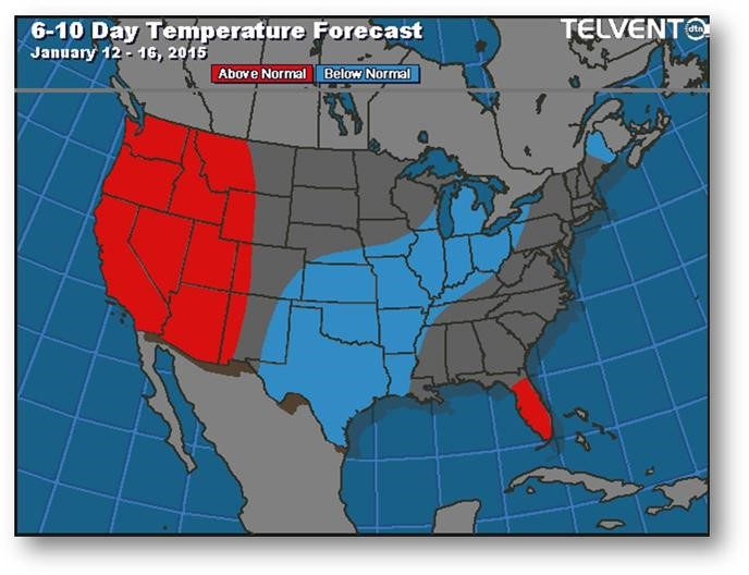 Prévisions de températures pour les 6 à 10 prochains jours