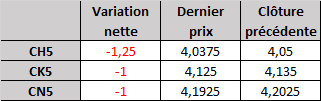 - Prix calculé en fonction du rapport 201 du CME hier :
