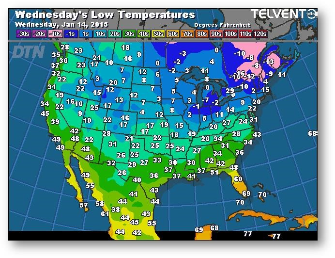 Les données publiées par le USDA hier étaient légèrement haussières. On continue de parler de la possibilité que la forte demande de soja se traduise par une diminution de la superficie d'ensemencement de maïs en 2015-2016 au profit du soja. Le USDA évalue la production finale à 14,216 milliards de boisseaux, soit environ 200 millions de boisseaux de moins que la prévision de novembre et 130 millions de moins que les attentes du marché. Le rendement a été revu à la baisse, passant de 173,4 à 171 boisseaux/acre. Les stocks ont quant à eux été ajustés à la hausse.