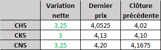 - Prix calculé en fonction du rapport 201 du CME hier :