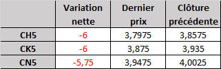 Contrat à terme du maïs à 6 h HNC : en baisse
