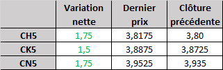 Contrat à terme du maïs à 6 h HNC : en hausse