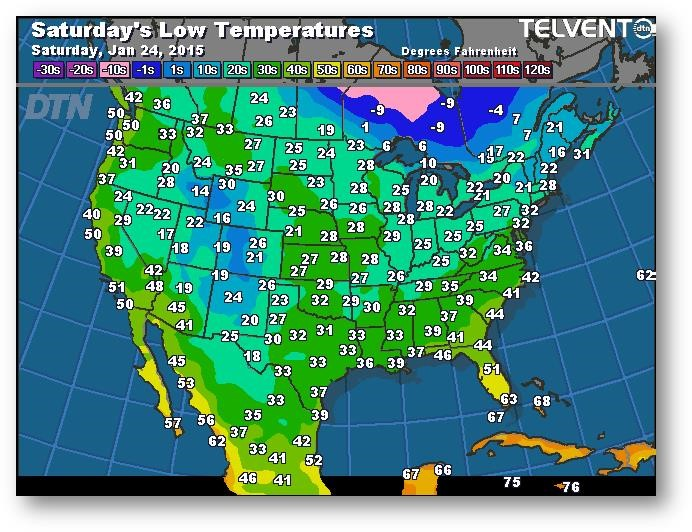 Prévisions des températures les plus basses (degrés Farenheit)