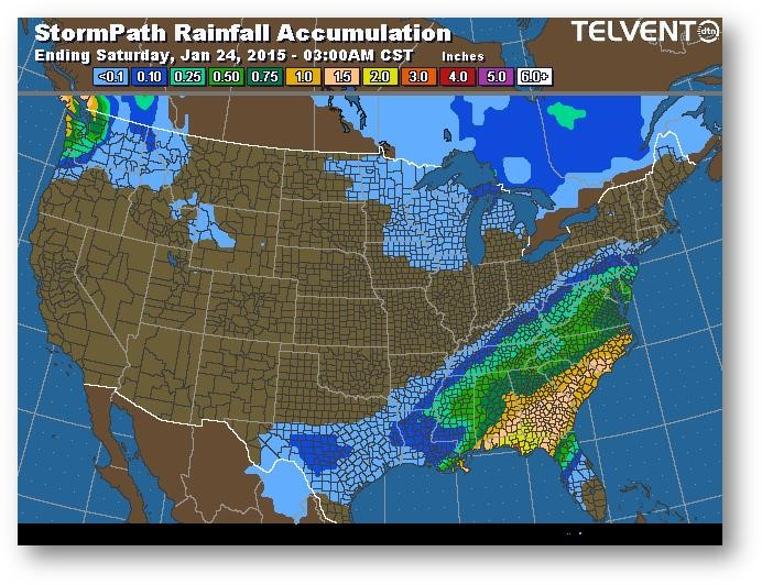 Trajectoire de tempête – Accumulation de précipitations (pouces)