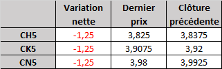 - Prix calculé en fonction du rapport 201 du CME hier :