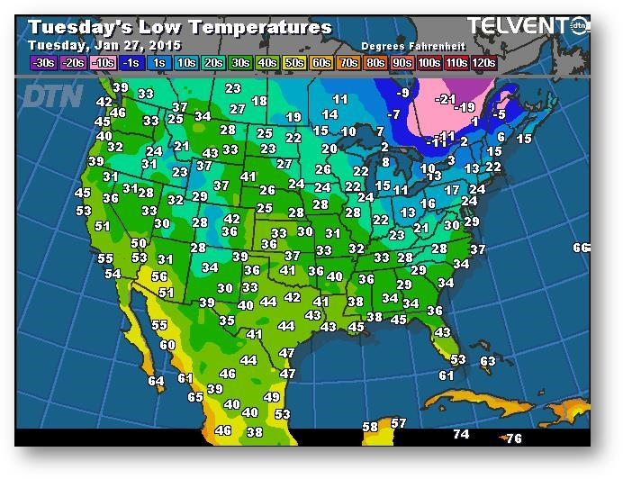 Prévisions des températures les plus basses (degrés Farenheit)