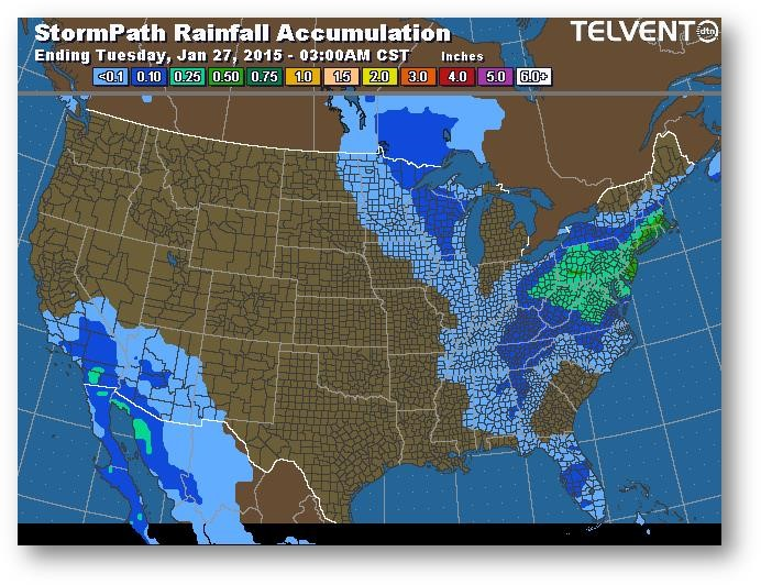Trajectoire de tempête – Accumulation de précipitations (pouces)