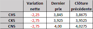 Contrat à terme du maïs à 6 h HNC : en baisse