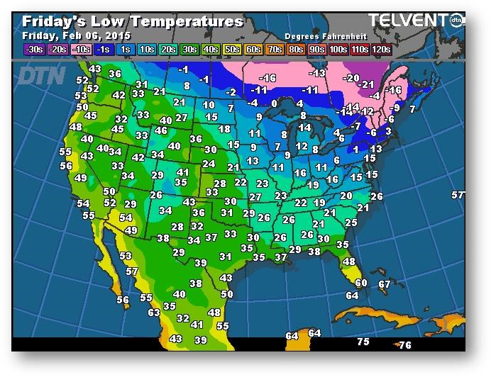 Prévisions des températures les plus basses (degrés Farenheit)