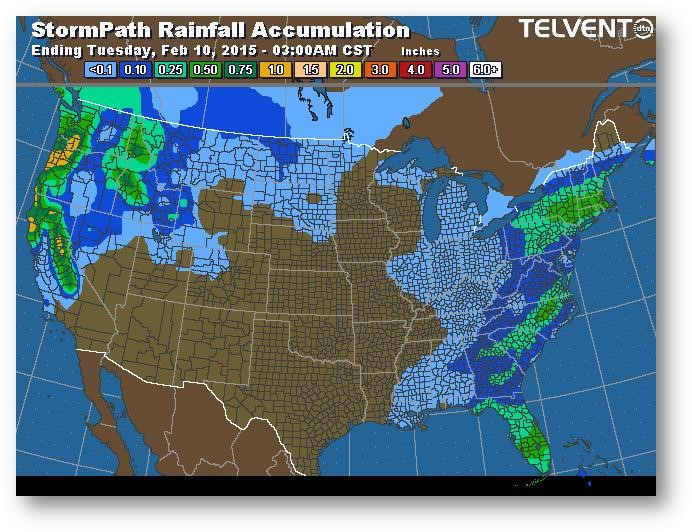 Trajectoire de tempête – Accumulation de précipitations (pouces)