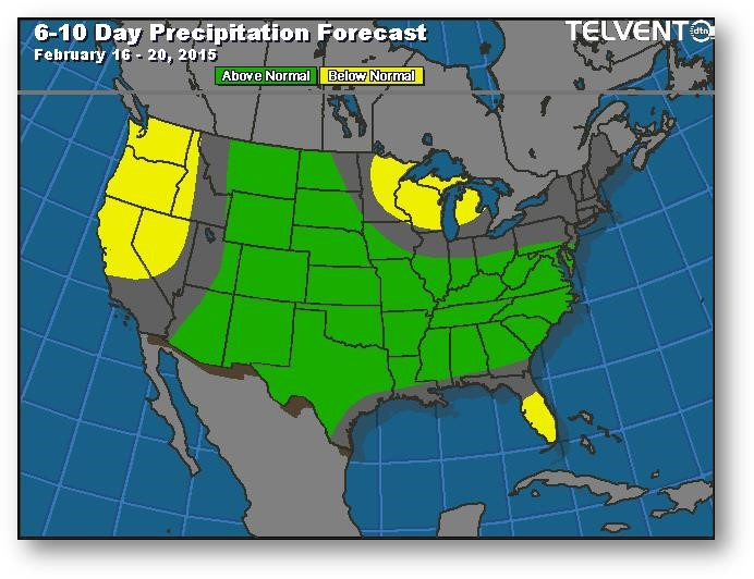 Dans sa mise à jour de février, le USDA a publié une estimation des stocks de report de maïs correspondant aux attentes les plus basses, qui est passée de 1877 millions de boissseaux (janvier) à 1827 millions de boisseaux. En ce qui a trait à la production d'éthanol, le USDA a revu à la hausse sa prévision de 75 millions de boisseaux, qui a été partiellement compensée par la diminution de 25 millions de boisseaux dans l'alimentation animale. Si l'industrie de l'éthanol utilise davantage de maïs, on obtient inévitablement une augmentation de la production de drêche sèche, ce qui explique la baisse de maïs pour l'alimentation animale. À l'échelle internationale, le gouvernement a révisé à la hausse son évaluation de la récolte de l'Ukraine de l'année dernière ainsi que les exportations. Les marchés au comptant n'ont pratiquement pas bougé, tant du côté de la demande que de l'activité des agriculteurs. La CONAB annoncera jeudi sa prévision mise à jour de la production du Brésil, y compris un premier véritable premier coup d'oeil à la safrina.
