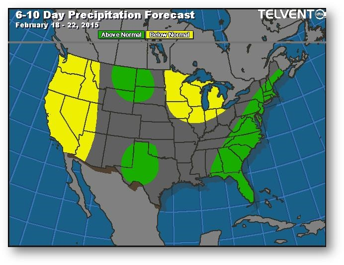 Cette semaine, les prix du maïs sont restés à l'intérieur d'une fourchette étroite. La prévision de la CONAB pour la production de maïs au Brésil était supérieure aux attentes. Les ventes à l'exportation des États-Unis ont été élevées et au-delà de la moyenne hebdomadaire nécessaire pour atteindre la prévision du USDA à 1750 millions de boisseaux. Les principaux acheteurs ont été le Mexique et le Japon. Comme les stocks de report sont considérables, les ventes devraient demeurer élevées; si ce n'était pas le cas, ce serait inquiétant. Sur la scène internationale, on se demande si l'Ukraine pourra respecter ses engagement si les tensions en Russie affectent les ports. Les marchés au comptant aux États-Unis ne bougent pas. Nous sommes à la veille d'une longue fin de semaine de trois jours puisque les marchés seront fermés lundi (President's Day).