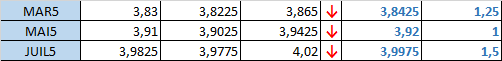 - Prix calculé en fonction du rapport 201 du CME hier :